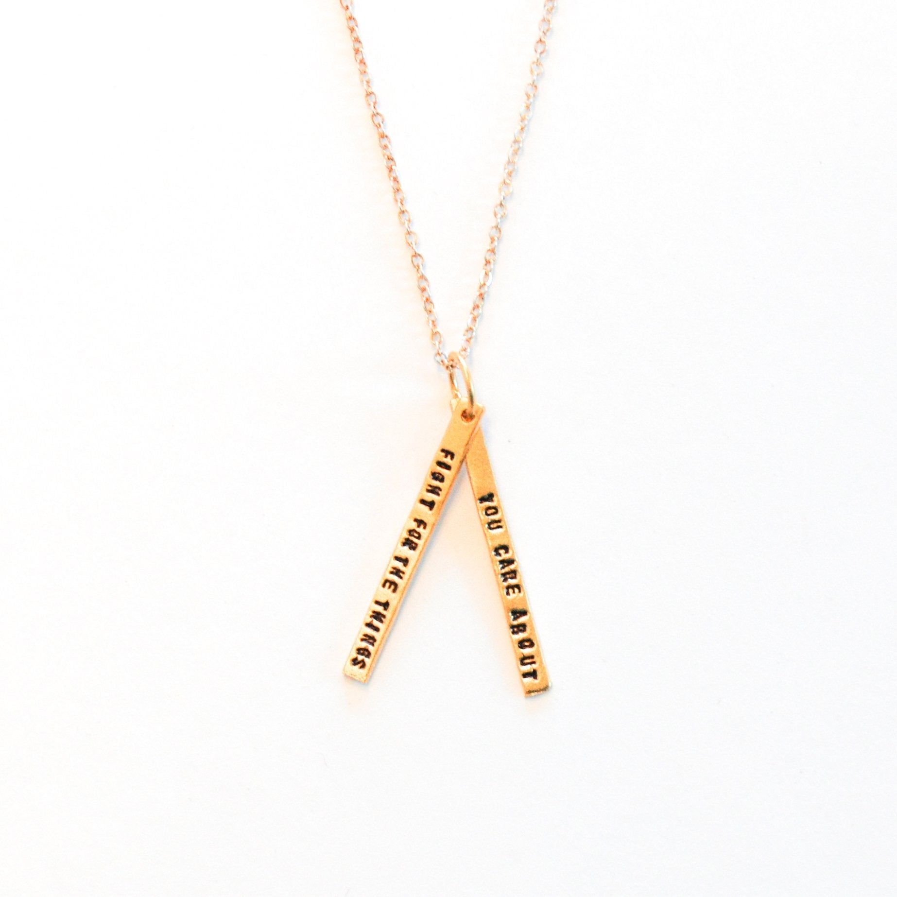 There is no better symbol for feminism and women's rights than Ruth Bader Ginsburg. This quote, "Fight for the things you care about" necklace is perfect for mothers, children, family members and friends. Remember this every day with this beautiful quote necklace from beloved RBG.
