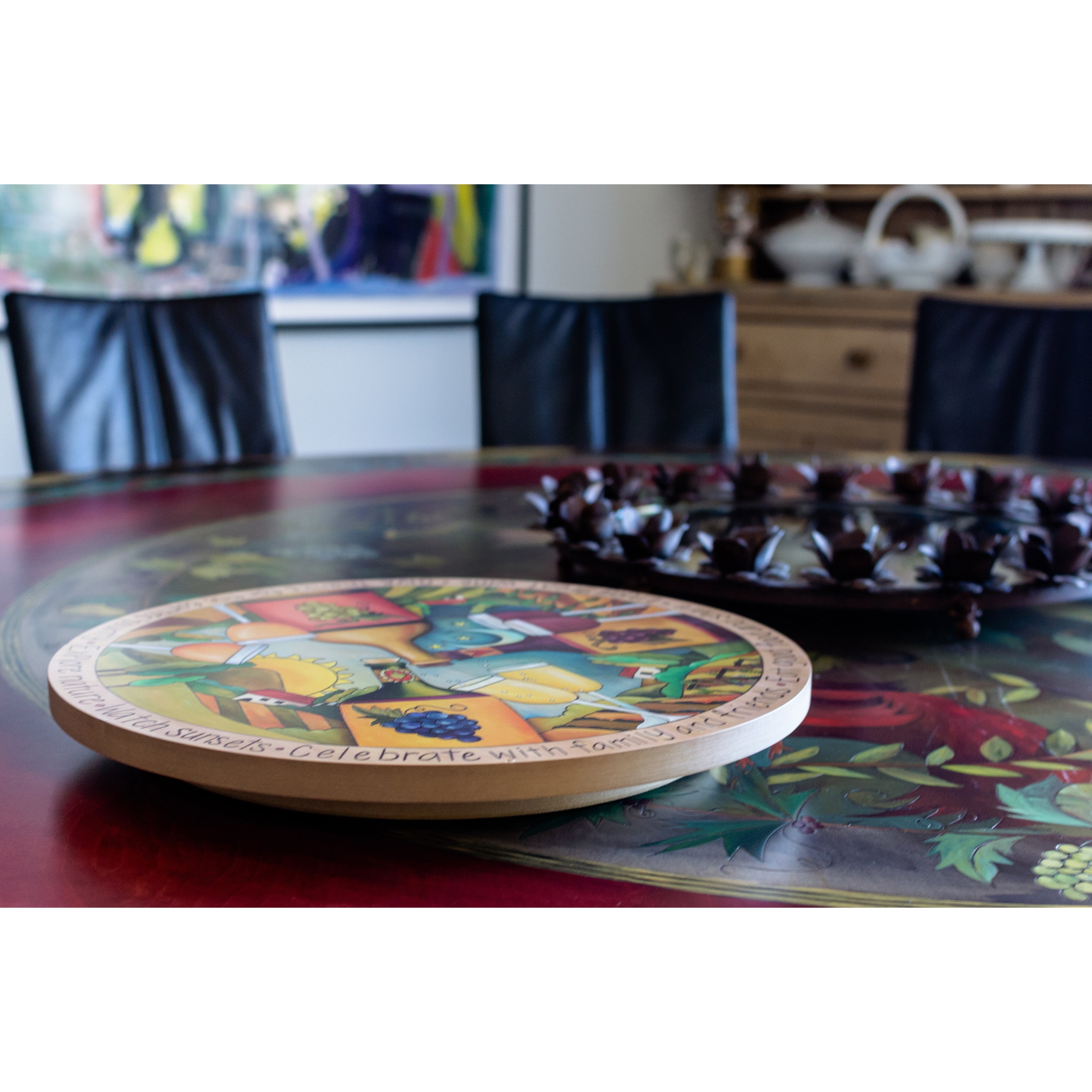 Vibrant and colorful artisan printed lazy susan.