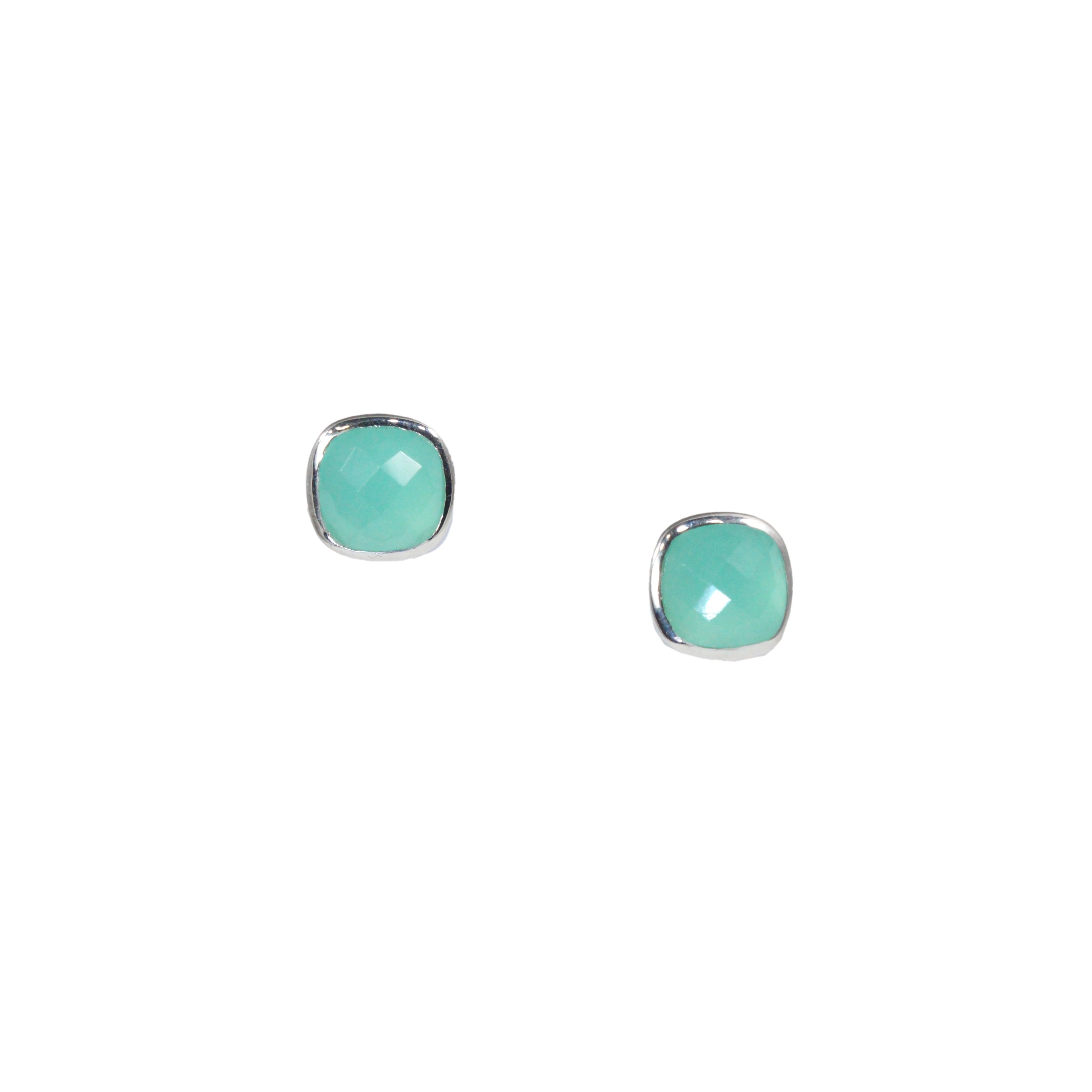lightly rounded square stud earrings framed in precious metal. These tiny studs go with any outfit.