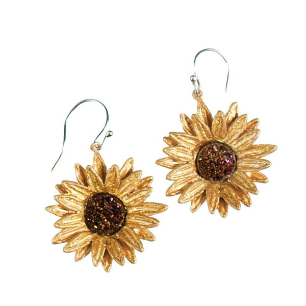Materials: The flowers made of hand patinated bronze with gold leaf and druzy stones in the centre. The wires are 925 silver.