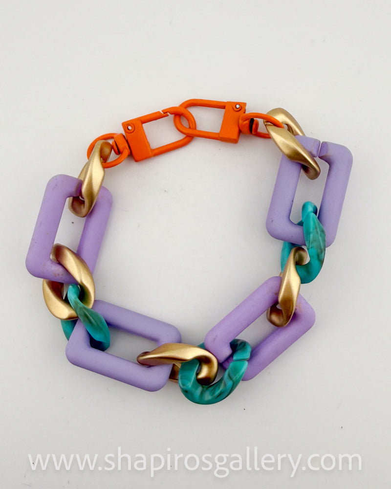 Woven mix of fun, matte and smoky translucent acrylic chain.