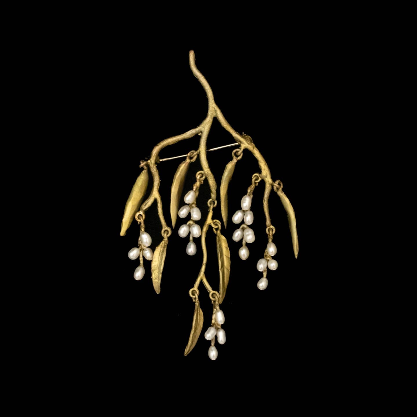 Cast bronze with a hand patina finish. Accented with white freshwater pearls.