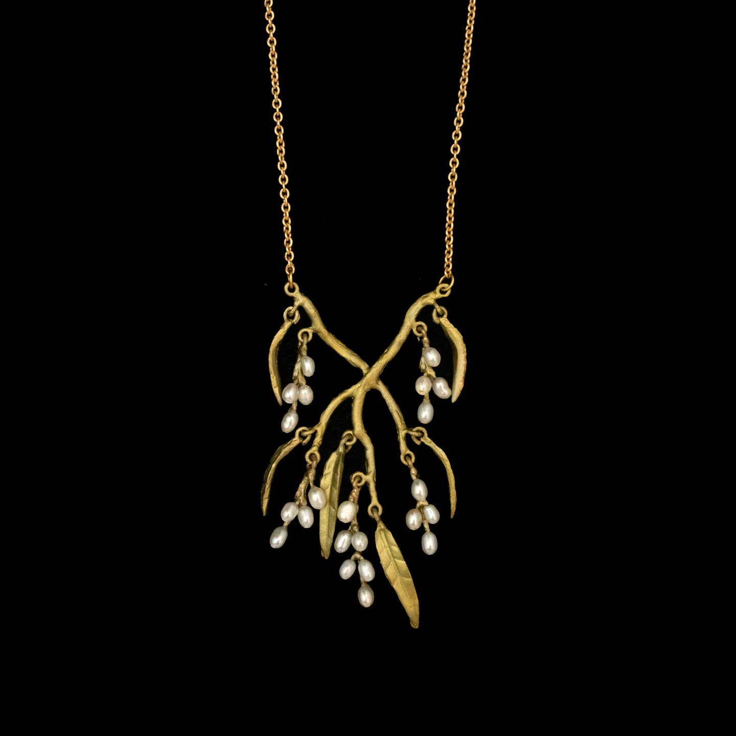 Cast bronze with a hand patina finish. Accented with white freshwater pearls.