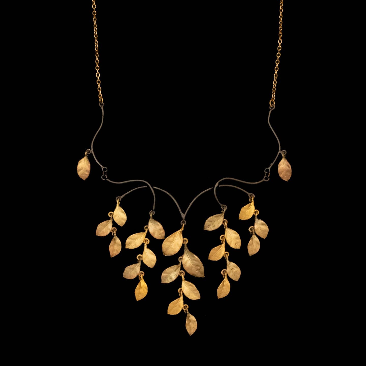 Cast bronze with a brown patina finish. Accented with 24k gold and layered metal finishes.
