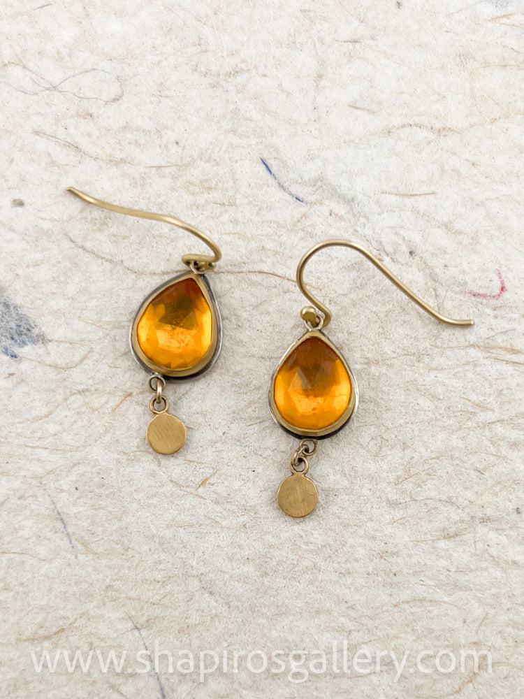 Sparkling rose cut citrine‚ is wrapped in warm 22k gold and accented with a 22k gold drop.