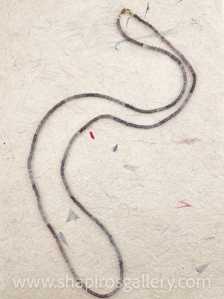 This long strand of organic shaped iolite is arranged to showcase a beautiful ombre effect.  Can be worn in a single long strand, or doubled.