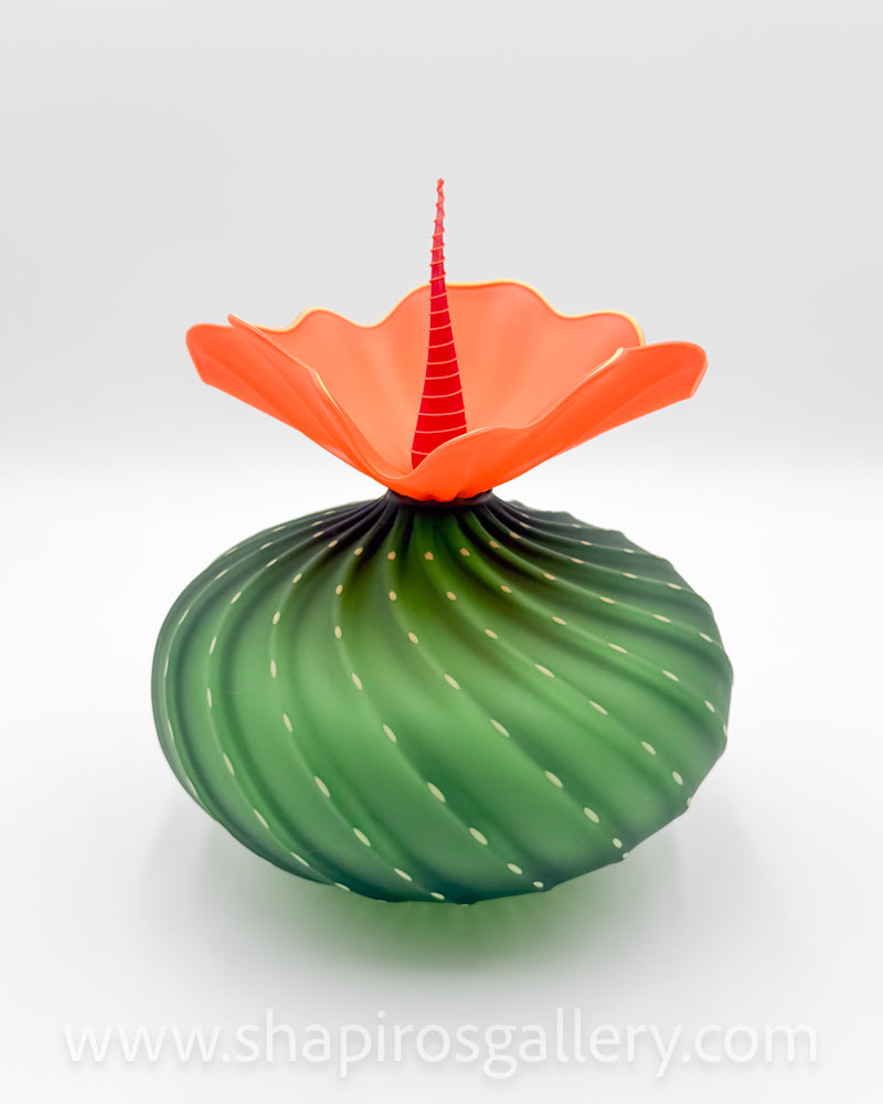 Rich colorful glass with interesting texture is combined to create a beautiful and whimsical botanical inspired sculpture.